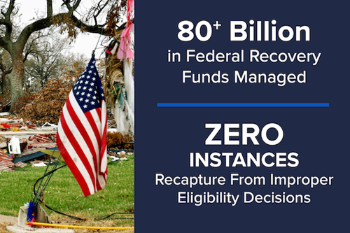 We work collaboratively with state and local leaders tasked with disaster and non-disaster allocations, recovery and grant compliance. We clarify what must be monitored and put in place reliable processes to ensure you can meet or exceed requirements.
